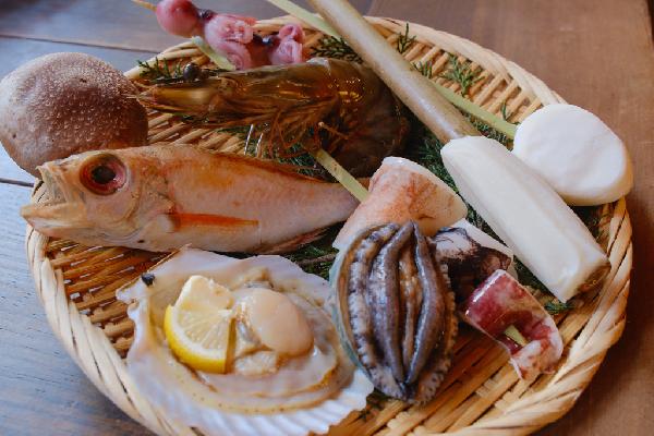 ・活あわびの踊り焼き・海老の鬼殻焼き・のどくろ一夜干し