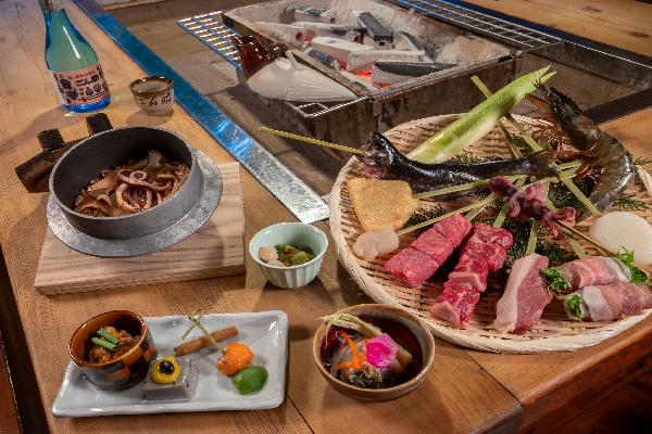 ・活あわびの踊り焼き・海老の鬼殻焼き・のどくろ一夜干し