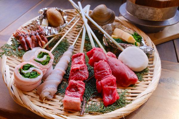 ・和牛ステーキ串・アスパラガスベーコン巻・ひな鶏のもも